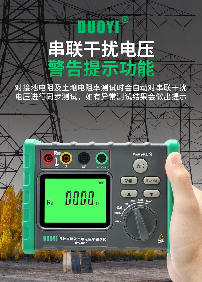 DY4100A/DY4100B接地電阻測(cè)試儀充電樁接地測(cè)量?jī)x光伏電壓防雷電阻儀